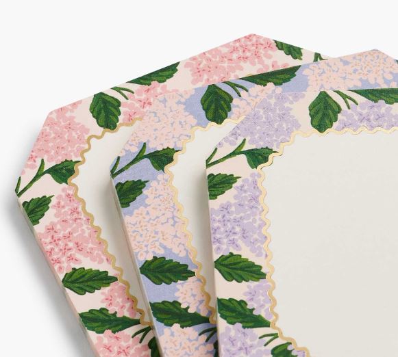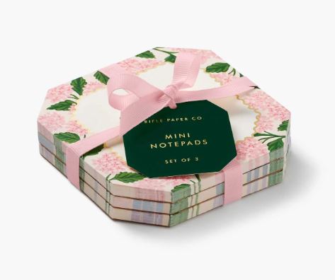 Jot down reminders or leave a sweet note with this set of three floral-bordered notepads, with metallic gold details and 50 tear-off sheets each.