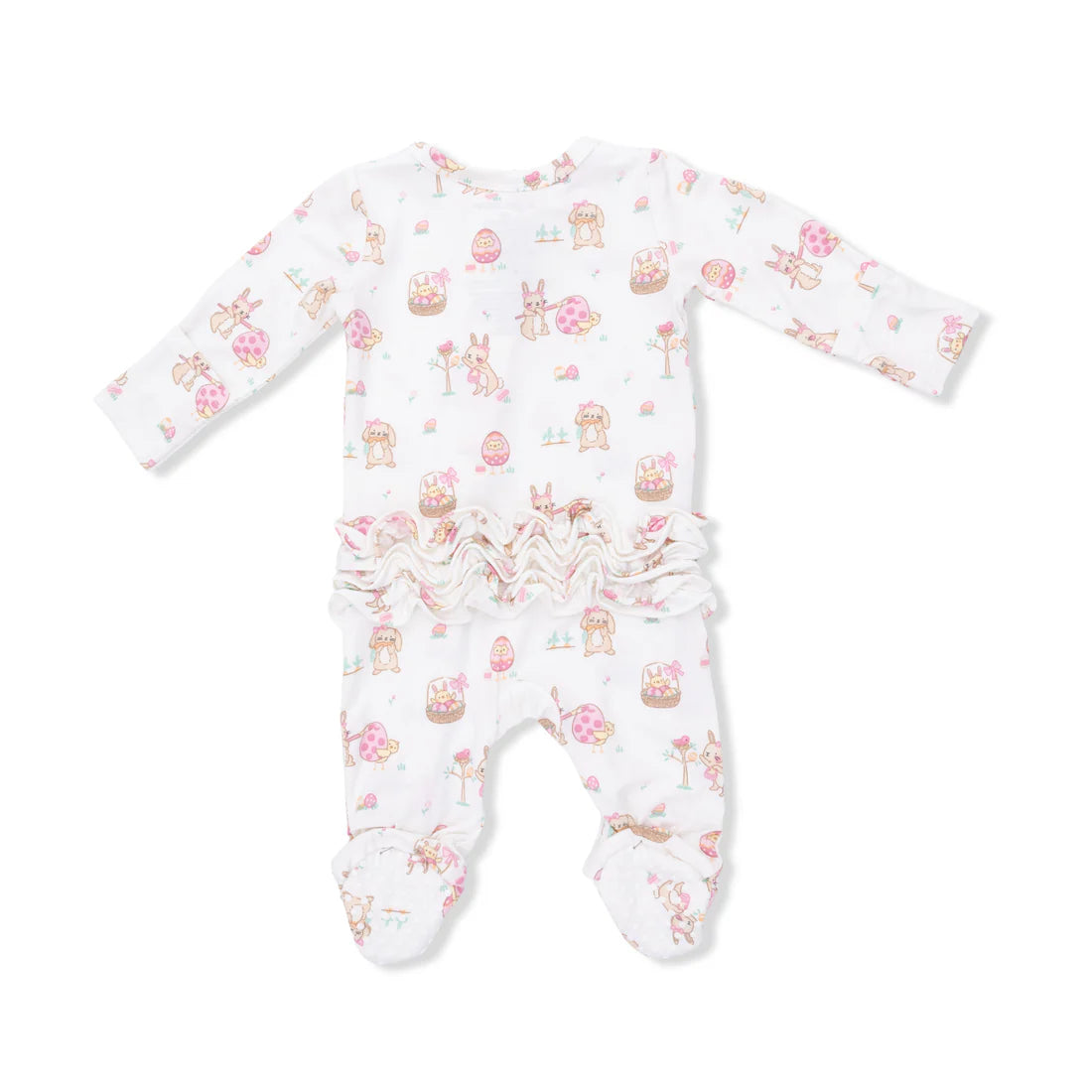 Easter Egg Hunt Pink Two-Way Ruffle Back Zipper Footie