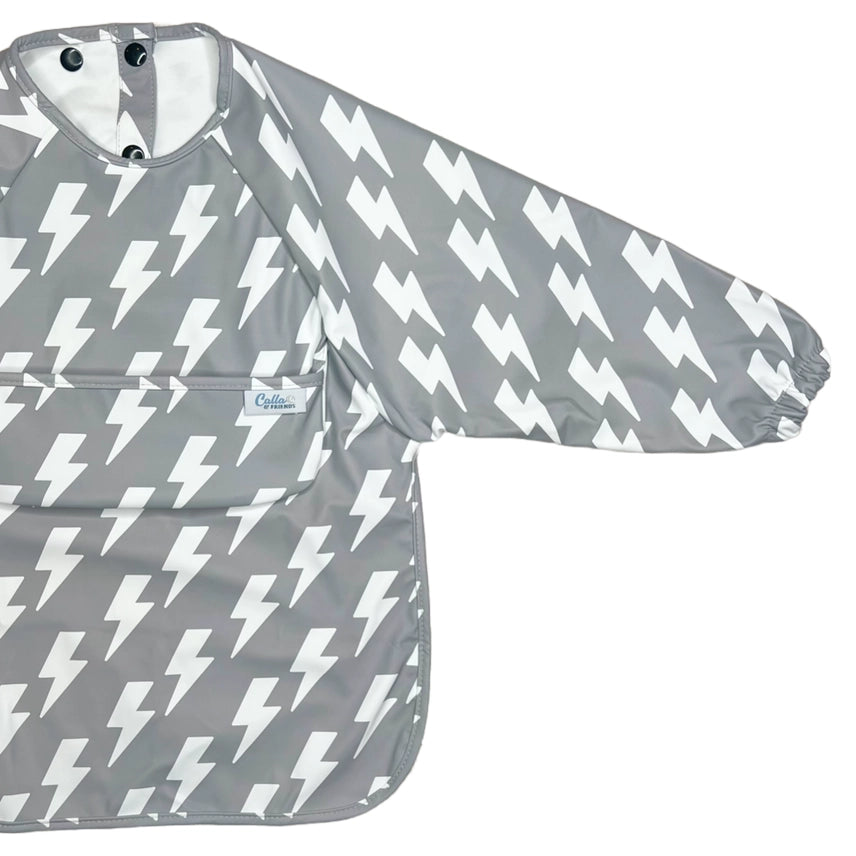 Perfect for your little one's meal-time, water table adventures, messy crafts, or any other time you want to keep those cute clothes clean. Not only do these long sleeve bibs match all of their cute clothes, they’re also highly functional. Each bib comes in a matching wet/dry bag making it perfect for on the go.  Simply place your dirty bib back in its bag & keep your diaper bag clean. With their waterproof design and catch-all pocket, they effortlessly keep your baby's clothes clean and dry. The pocket even folds under to fold flat when not needed for crafts or sensory tables. The multi-snap neck closure & elastic cuffs ensure a secure and adjustable fit that grows with your little one, making them perfect for every stage of their development.