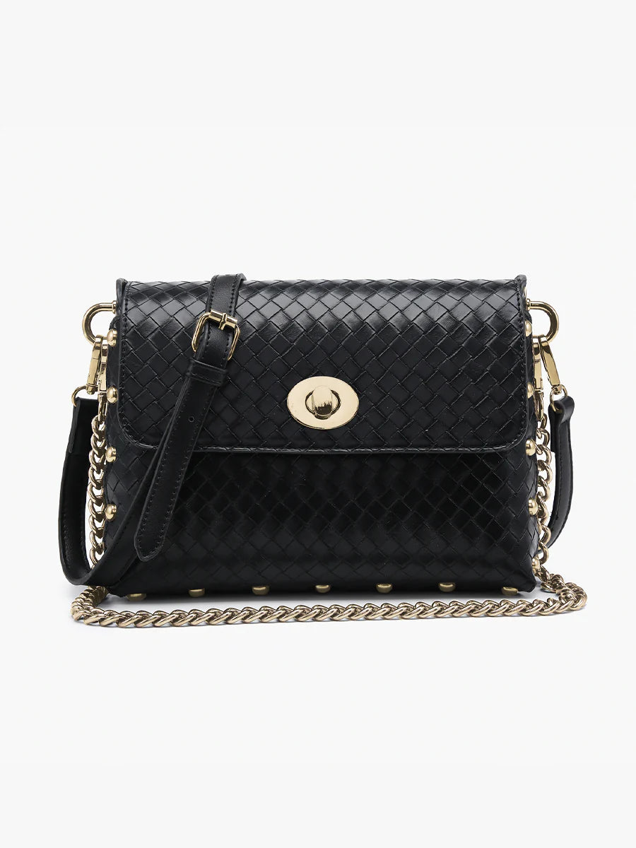 The Yazmin Faux Woven Crossbody adds a chic and sophisticated touch to the crossbody bag. Includes a removable chain strap and an adjustable/removable crossbody strap for multiple ways to carry.