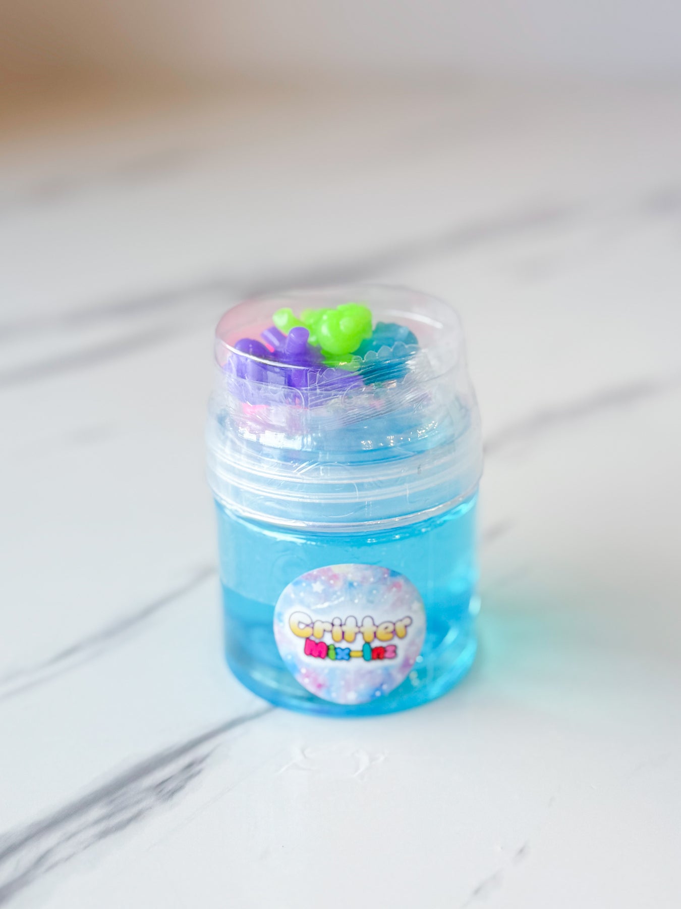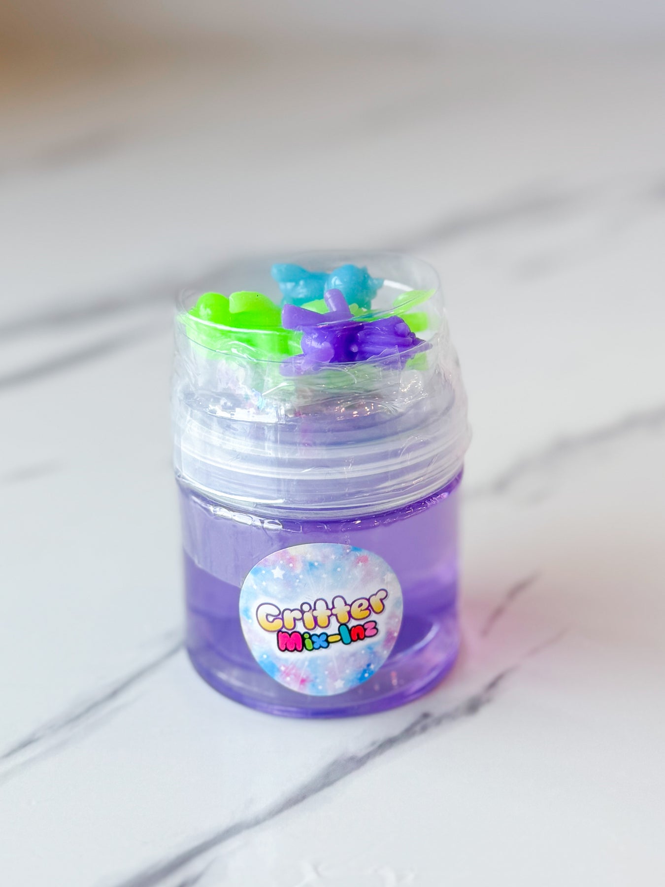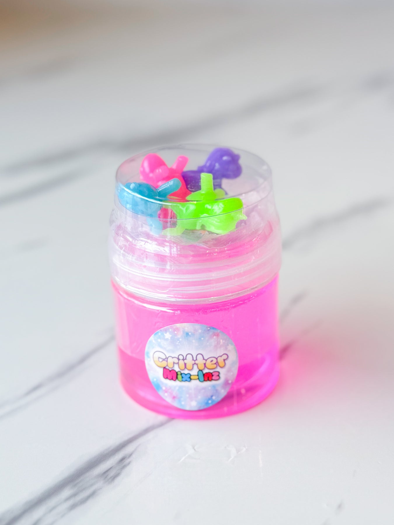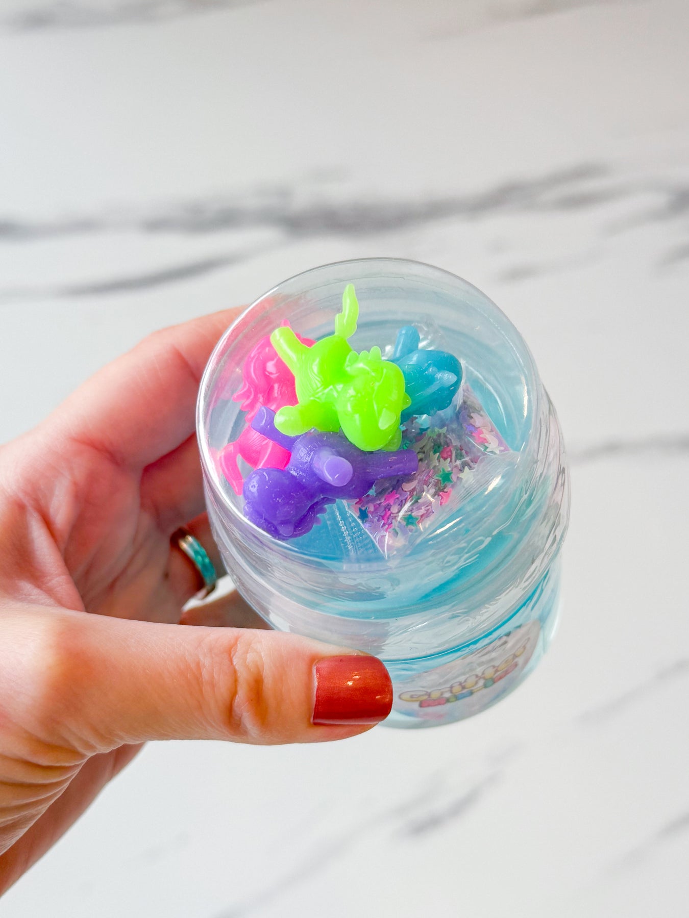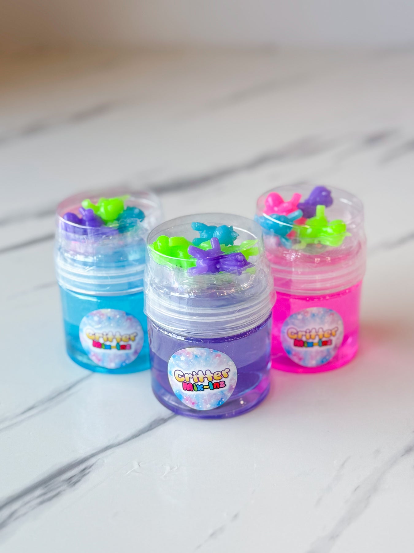These Unicorn Critter Mix-Inz slime come in a plastic jar to keep it contained when not in use and make it easy to grab, go, and play. Each jar contains one 4 different unicorns with your slime.