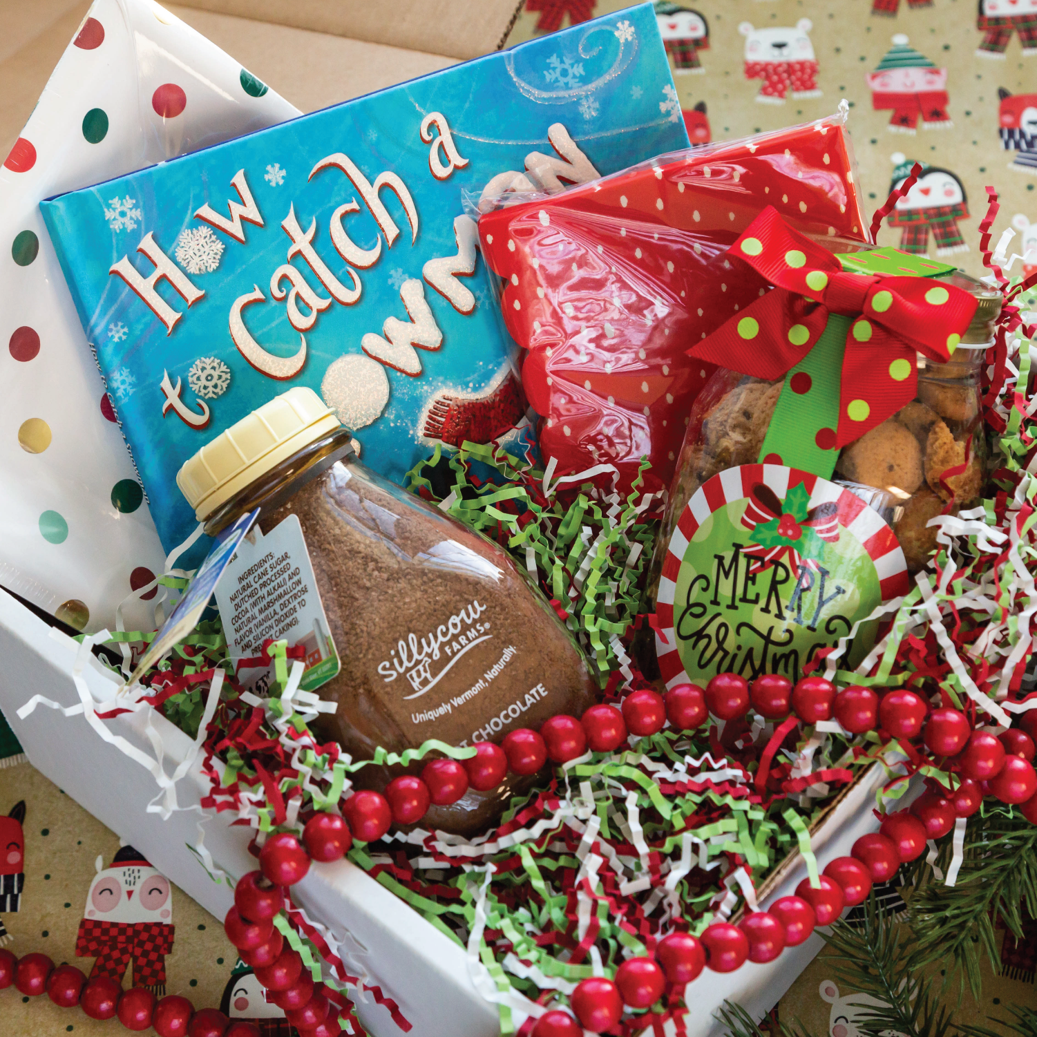 This adorable family Christmas box is perfect for a cozy night in. Enjoy a cup of hot cocoa, nibble on some chocolate chip cookies using the cutest plates and napkins, and everyone's favorite "How To Catch A Snowman Book".