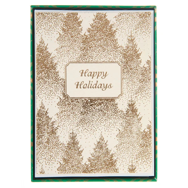 Gold Dotted Trees Happy Holidays Boxed Cards