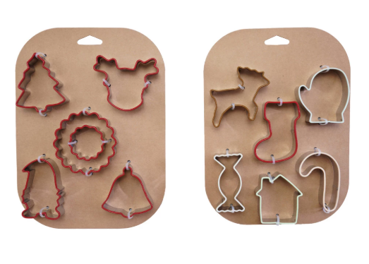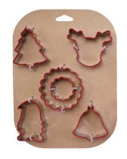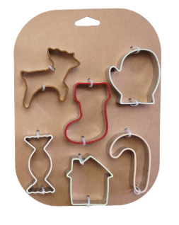 2"L - 5-1/2"L Stainless Steel Holiday Cookie Cutters on Paper Card, Set of 6