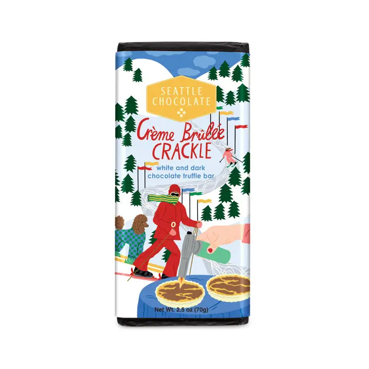 Crème Brûlée Crackle - Dark chocolate sandwiches a custardy white chocolate filling with teeny tiny dark chocolate chips and crispy burnt sugar.