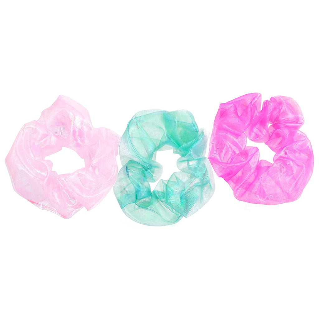 Iscream's Iridescent Organza Scrunchies packaged in a festive peppermint case.