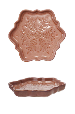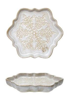 6" Round Stoneware Snowflake Shaped Plate, Reactive Glaze, 2 Colors (Each One Will Vary)