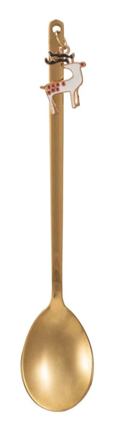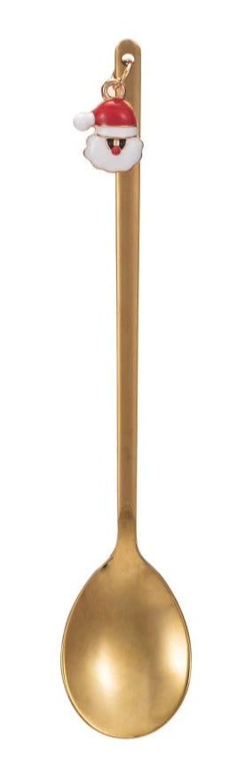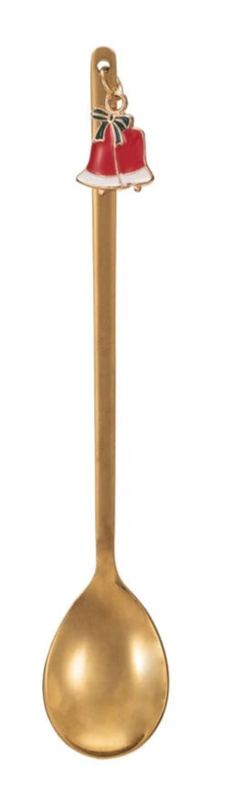 5-1/4"L Stainless Steel Spoon w/ Holiday Charm, Gold Finish, Multi Color, 3 Styles