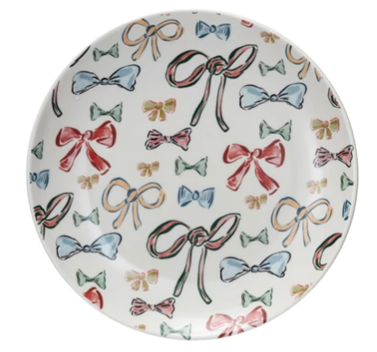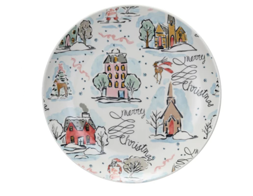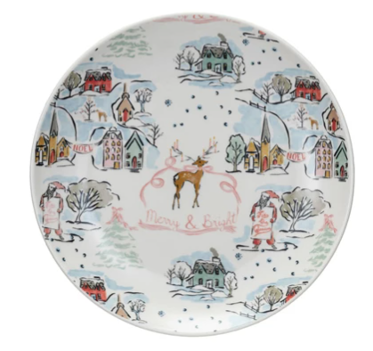 This festive fir tree plate is a delightful expression of holiday cheer, crafted from durable stoneware and boasting a lively Christmas tree illustration in a palette of seasonal colors.