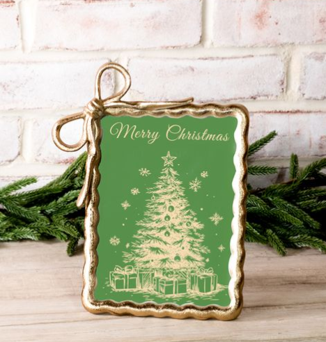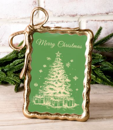 Encapsulate memories in this beautiful Gold Ribbon Picture Frame. Can be used for holiday photos or all year round!