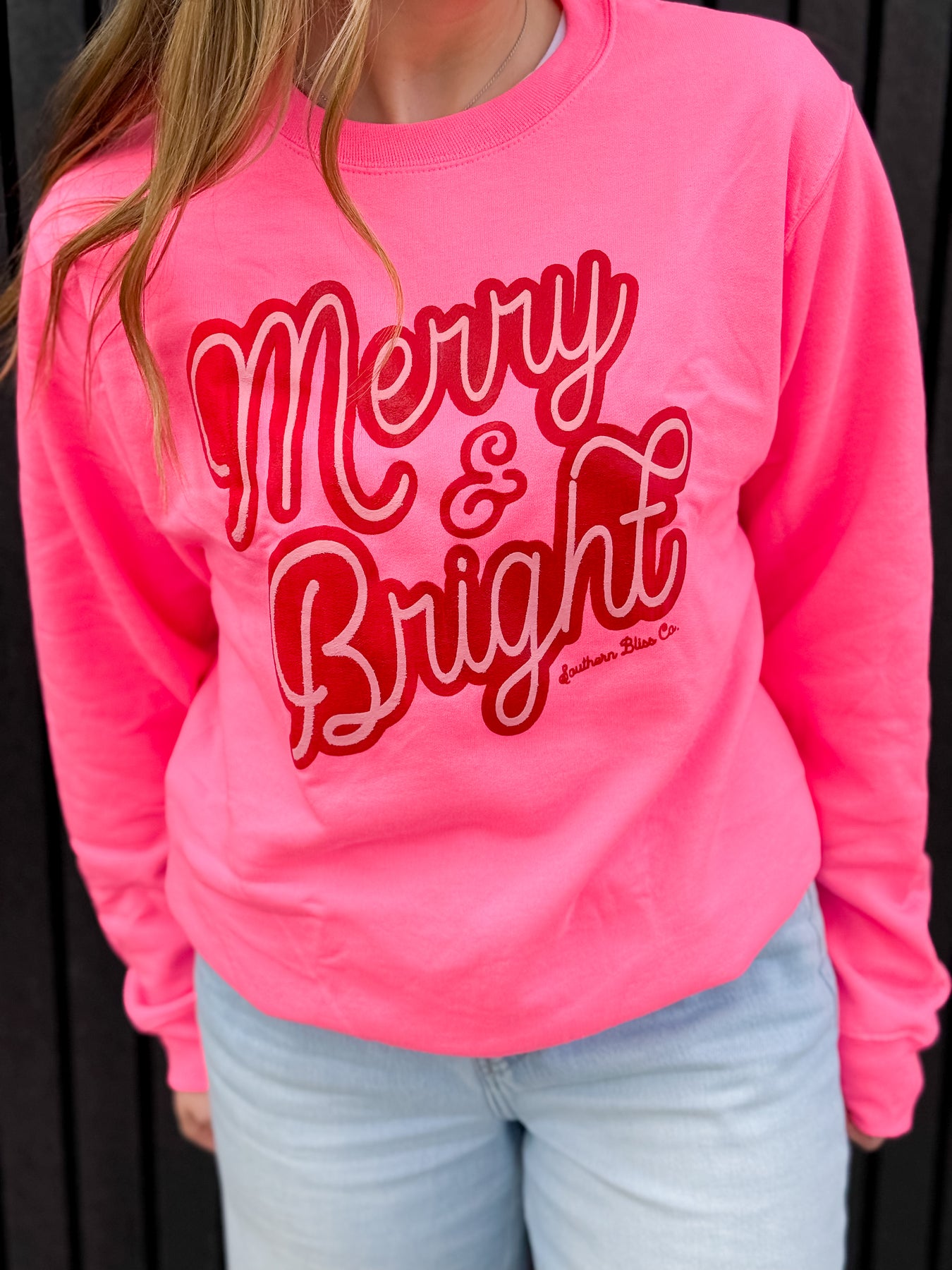 Festive meets cozy comfort in our "Hot Pink Merry & Bright" sweatshirt.