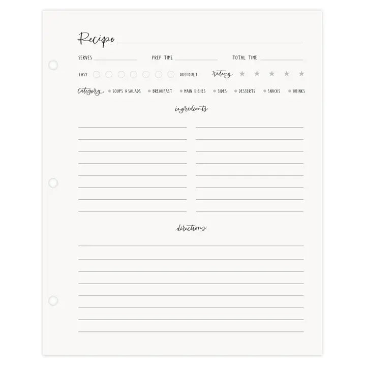 Enhance your recipe collection with the Petite Recipe Page Set. These high-quality pages are designed to work with the Strawberry Meadow Petite Recipe Binder, providing ample space for your culinary creations. Ideal for gifting alongside the binder or for anyone seeking to expand their recipe organization.
