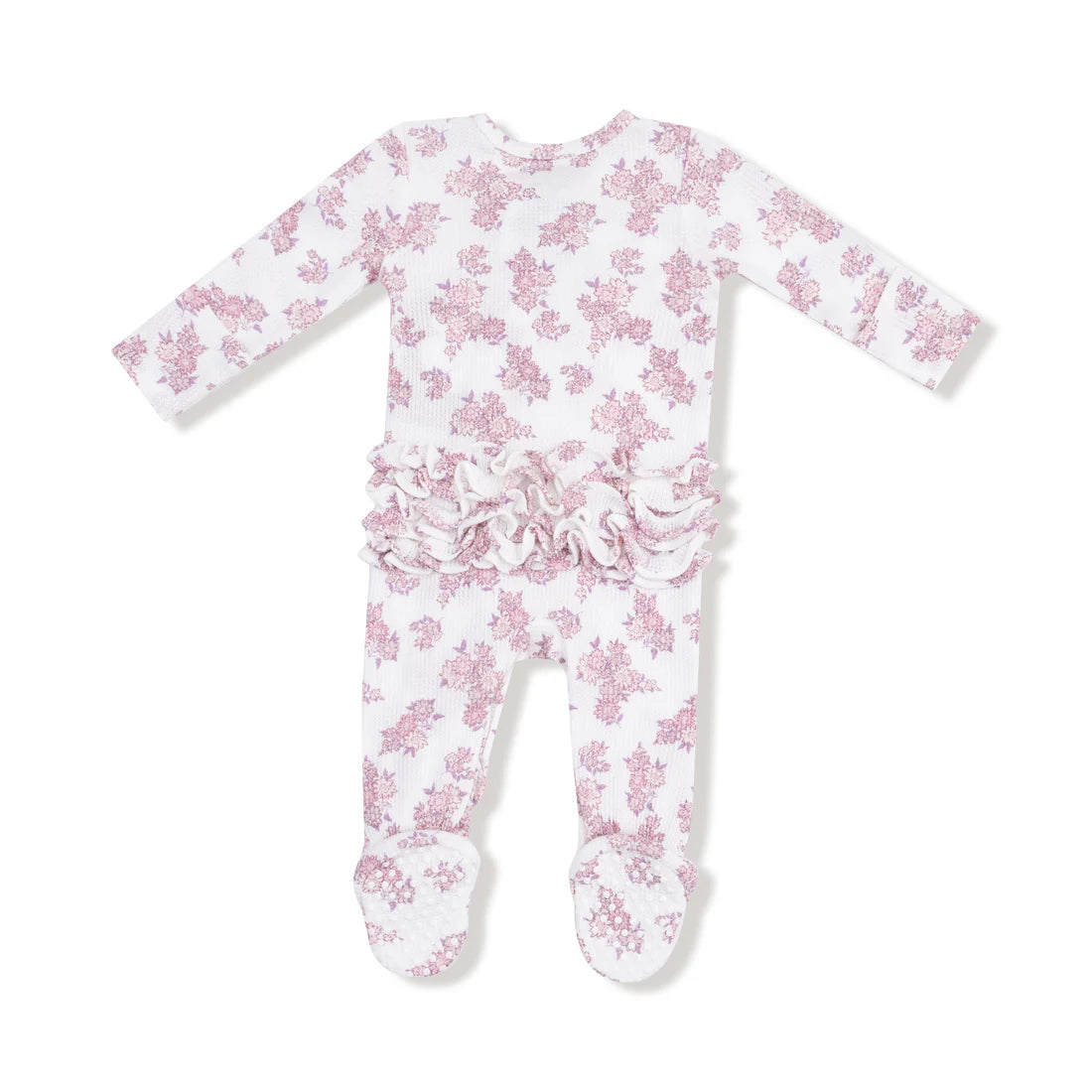 Dress your little one in effortless charm with Ruffle Front 2-Way Zipper Footie. Crafted from buttery-soft viscose from bamboo, this footie is designed for ultimate comfort and easy changes. The delicate ruffle front detail adds a playful, elegant touch, making it a perfect choice for naptime, playtime, or anytime.