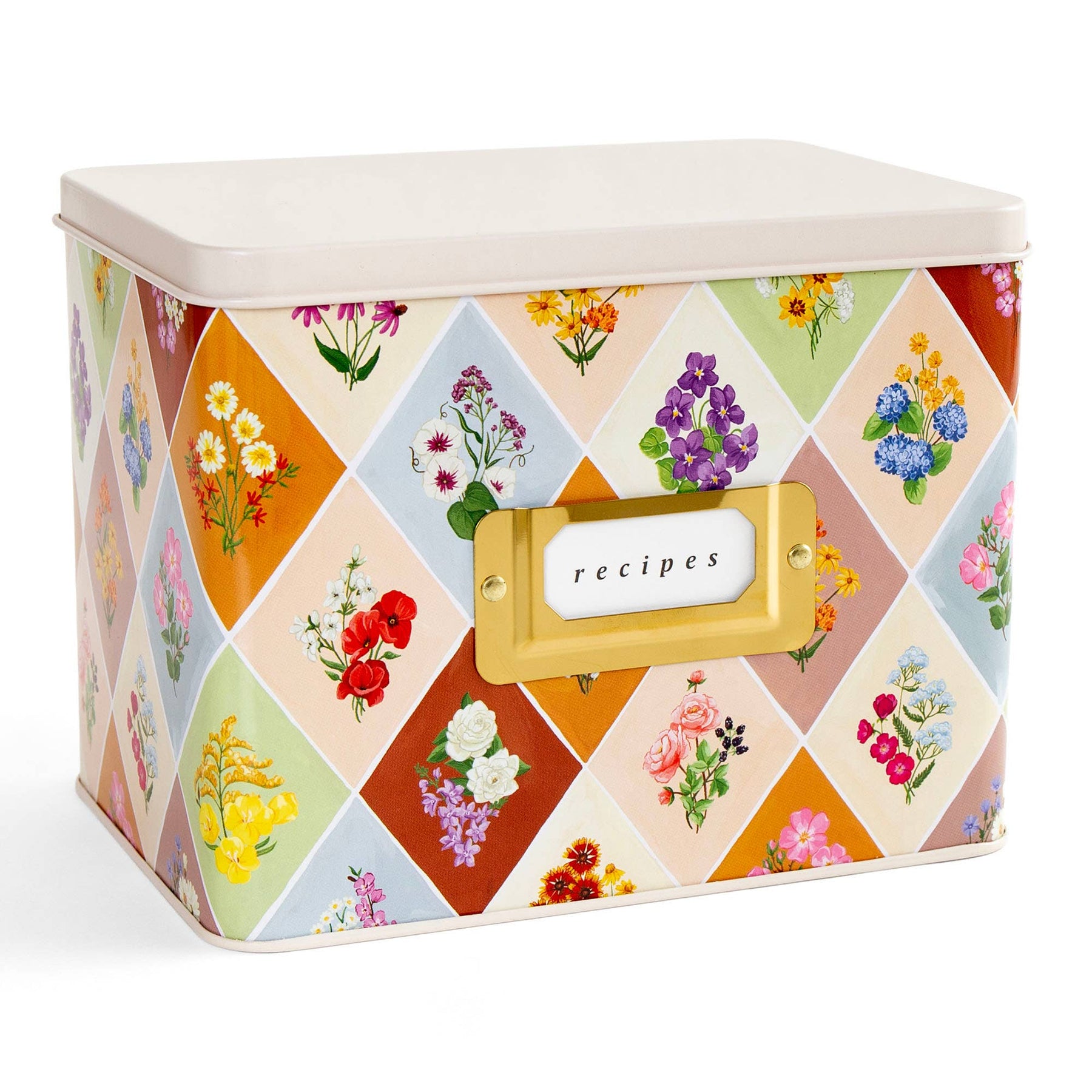 Vintage Blooms Floral Tin Recipe Box