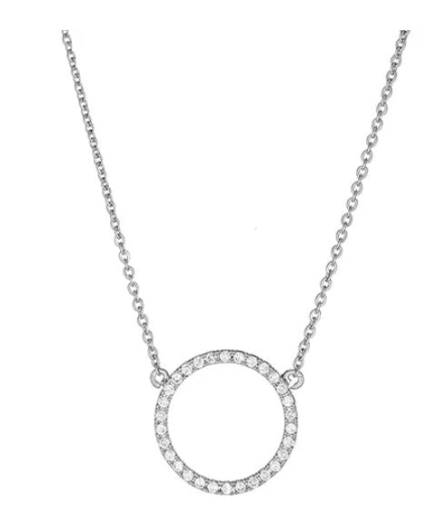 Add a touch of charm to your everyday look with the Maya J Sideways Circle Outline Necklace. This delicate chain features a diamond circle pendant, with a small-sized circle or a medium-sized circle. The small circle is approximately 3cm in diameter and the medium circle is approximately 3/4in in diameter
